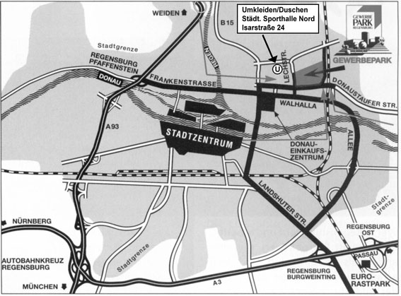 absolut flacher Straßenparcours auf einer 1109 m langen Runde (amtliche Nachvermessung vom 17.09.02). Jeder Kilometer ist deutlich gekennzeichnet.